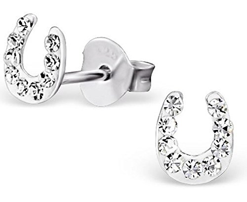 Unbespielt Schmuck Ohrschmuck Ohrringe Silber 925 Ohrstecker Hufeisen für Damen 5 x 6 mm mit Kristallen transparent inklusive Schmuckbox