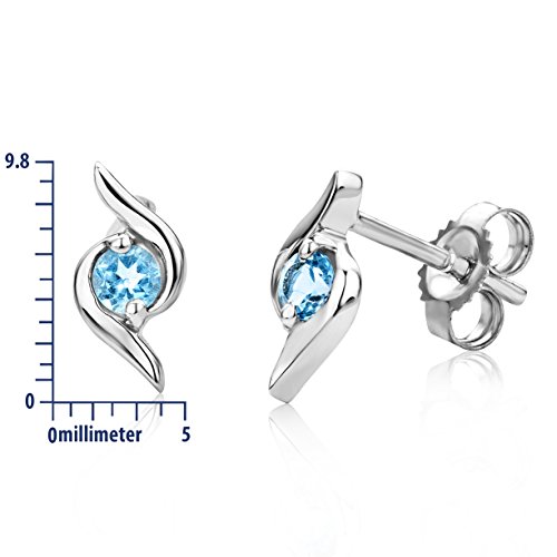 Miore Damen-Ohrstecker 9 Karat 375 Weißgold mit Topas Blau –