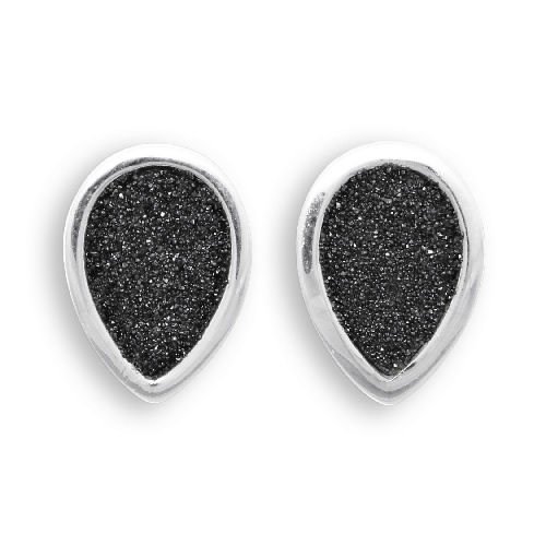 DUR: tropfenförmige Ohrstecker mit schwarzem Lava-Sand, Sterling-Silber 925 –