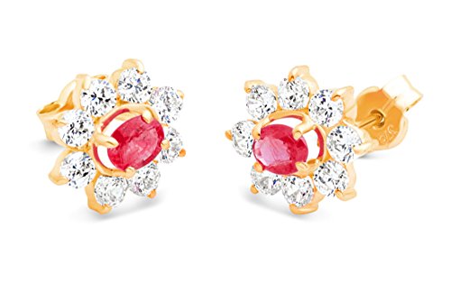 Miore Damen-Ohrstecker 9 Karat (375) Gelbgold Rubin und Zirconia –